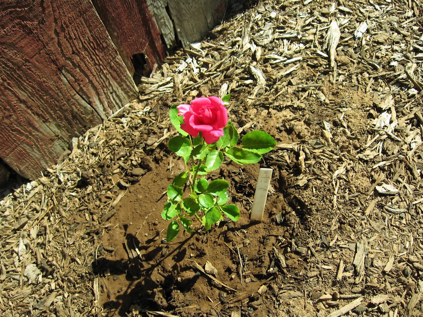 And here's what the first blooms looked like when the plants were less than 3 months old.  I positioned the two photos so that the roses would be directly underneath their "future selves" --